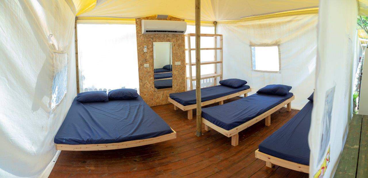 כל אוהל ממוזג, מאובזר במיטות עם כריות, סדינים וציפיות, שקע חשמלי להטענת ניידים, מקרר עם מקפיא, תאורה, מרפסת דק מעץ, שולחן קק"ל ופינת ישיבה. בנוסף, לנוחיות האורחים, מדשאות רחבות, פינות ישיבה, מנגלים, מטבחון מרכזי מאובזר בכיורים, מיקרוגל, קומקומים חשמליים, מקלחות, שירותים ומזנון. (עלות לינה משפחתית באוהל ממוזג החל מ-990 ₪ באוהל קולמן החל מ-690 ₪ ). שילוב מושלם של לינה נוחה בטבע בשילוב הנאה ואתגר!