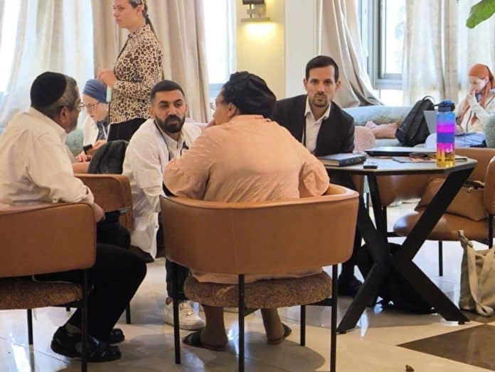 בתמונה: מנהל המרפאה אליהו אלמליח וד"ר רביע חטיב רופא משפחה, יושבים עם זוג שביתם נפגע במלחמת 12 הימים עם כלביא.