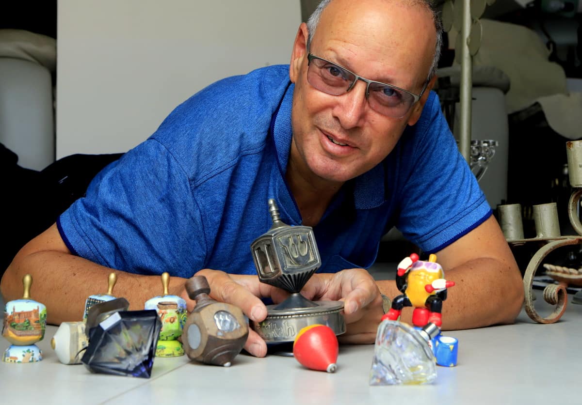 גיל רובין (62) תושב חיפה נתקל לפני 30 שנה בדובי בשוק הפשפשים וגילה שהוא שווה לא מעט כסף ומאחוריו קהילת אספנים. הוא עזב תפקיד ניהולי בכיר והחליט לעסוק באספנות. לקראת חנוכה הוא חשף לפנינו את אוסף החנוכיות והסביבונים שלו שכוללים פריטים בני מאות שנים כולל חנוכיה שעשויה מבקבוק וודקה ותרמיל פגז