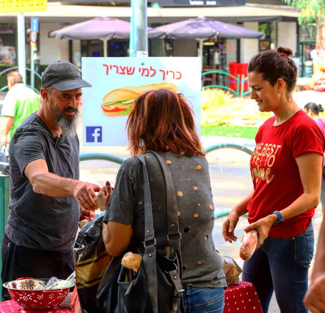 שעת בוקר באחד הרחובות הראשיים בחדרה ובקצהו נמצא אותה אנומליה קרי – דוכן שמציע כריכים חינם לכל דיכפין אשר צריך. נדמה שאנשים לא מאמינים שמישהו במדינה יציע להם משהו כזה ללא עלות "כמה זה עולה' מסננת אישה שעוברת ולא שמה לב לשלט שמציע כריך  בחינם. אנשים שכבר מכירים את הדוכן ניגשים עם חיוך רחב ומברכים את איה ורביד אחד מהם שסיפר איך המדינה מתעמרת בו על אף נכותו מפליא אותם כשהוא רוכש עבורם פחית קרה של מיץ מרענן כאות תודה