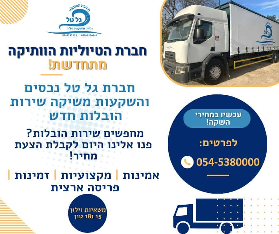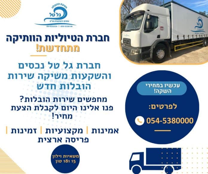 חברת גל טל נכסים והשקעות גאה להציג את שירות ההובלות החדש – מקצועי, אמין וזמין במחירי השקה מיוחדים!