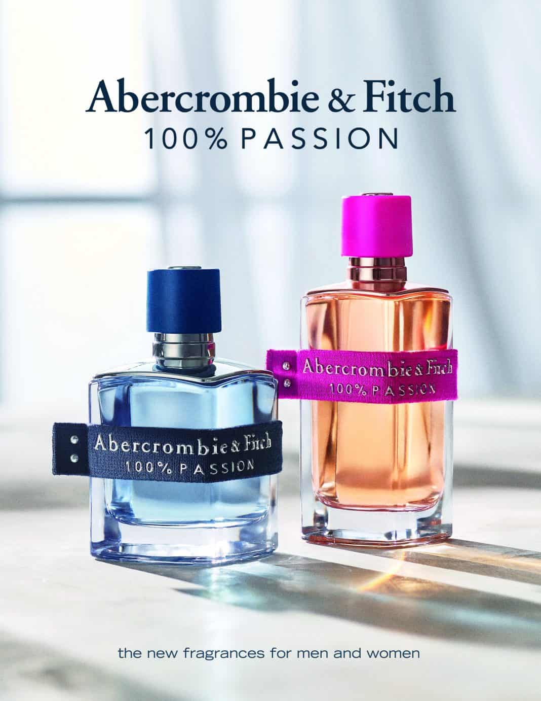 Abercrombie & Fitch גאה להכריז על ההשקה הזוגית החדש Abercrombie & Fitch 100% PASSION , צמד בשמים יוצא דופן לגברים ונשים.