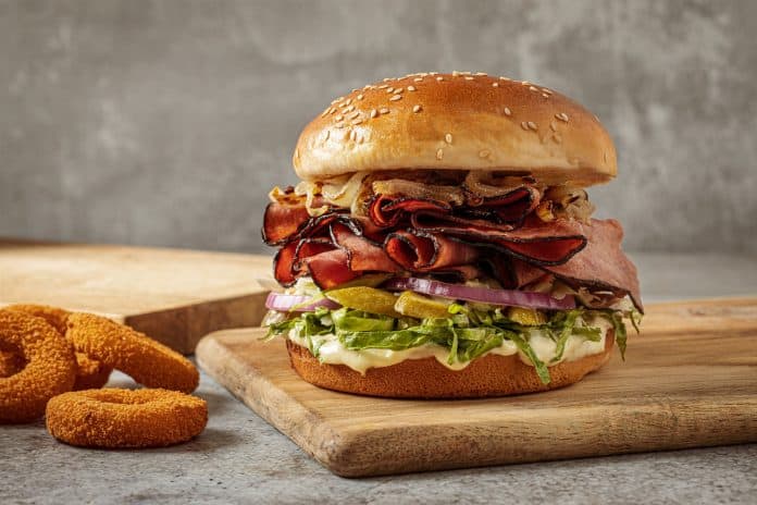 כריך ברוקלין – כריך קורנביף בלחמניה עגולה, עם בצל מטוגן, קולסלואו, רוטב ברביקיו, איולי חרדל, בצל סגול, חסה ופרוסות מלפפון כבוש. מחיר לצרכן:  49 ₪. ניתן לשדרג את ההמבורגרים, בתוספת 20 ₪ לארוחה מלאה, עם תוספת צד ופחית שתיה.