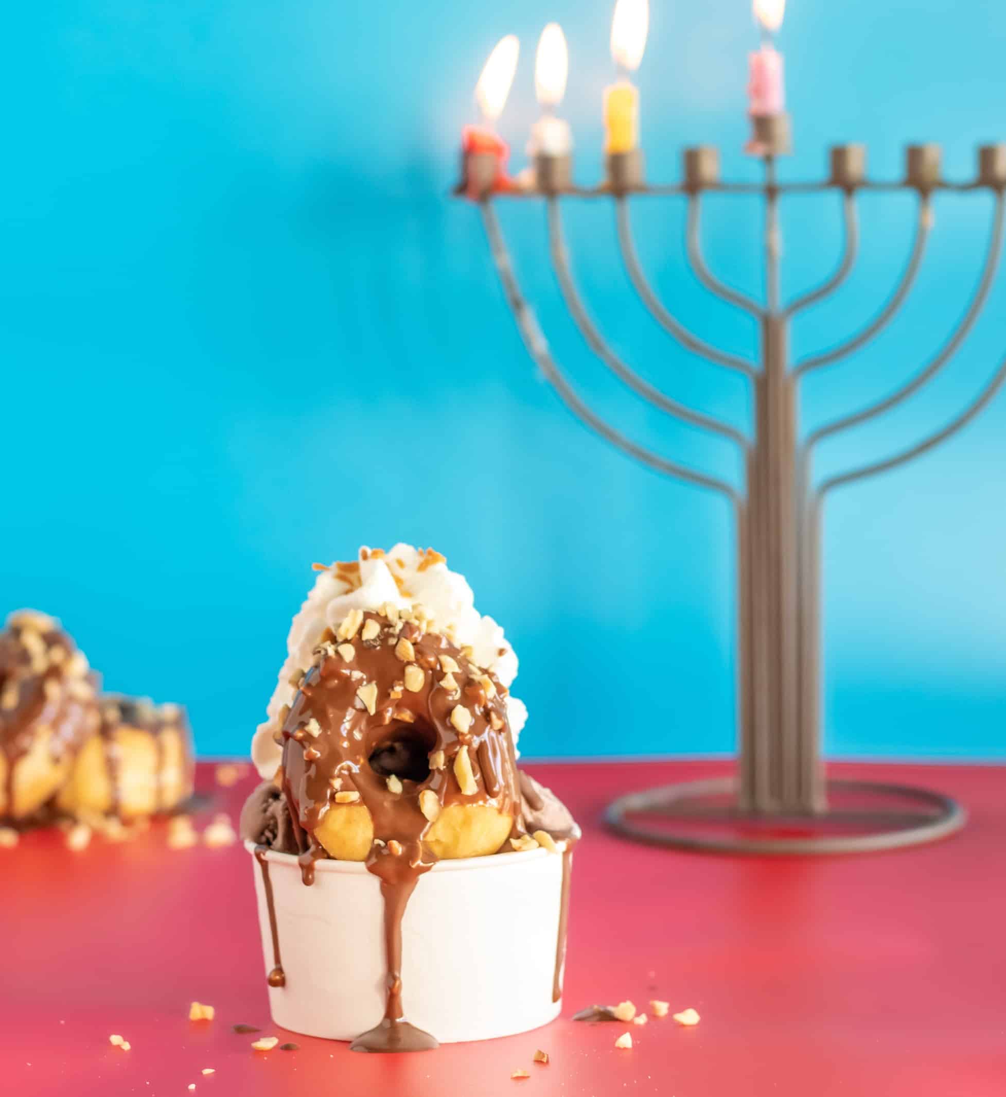 במיוחד לחנוכה גם מנה מיוחדת של דונאטס-גלידה: כדור גלידה בתוספת דונאטס, בציפוי רוטב ו-2 תוספות לבחירה ומהדורה מוגבלת של גלידת קשיו – גלידת קרם קשיו איכותית בטעם מתוק עם מליחות מעודנת ובתוספת אגוזי קשיו והמון אהבה